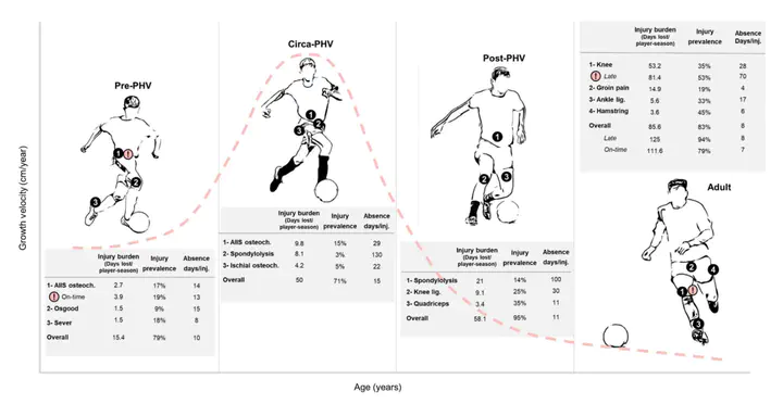 Management of the maturity-related injury risk profile, in combination with other relevant factors (training load, neuromuscular and biomechanical factors, physiotherapy, coaching, communication, psychosocial factors…), might help improve the success of player development programmes and protect the health of young football players.