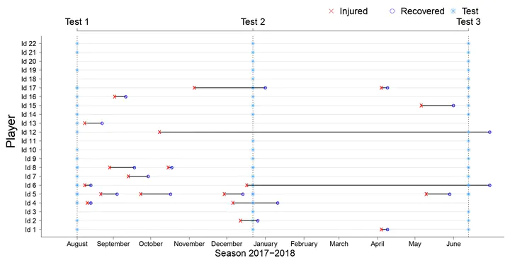 Data-based methods and statistical models are given special attention to the study of sports injuries to gain in-depth understanding of its risk factors and mechanisms. The objective of this work is to evaluate the use of shared frailty Cox models for the prediction of occurring sports injuries, and to compare their performance with different sets of variables selected by several regularized variable selection approaches. The study is motivated by specific characteristics commonly found for sports injury data, that usually include reduced sample size and even fewer number of injuries, coupled with a large number of potentially influential variables. Hence, we conduct a simulation study to address these statistical challenges and to explore regularized Cox model strategies together with shared frailty models in different controlled situations. We show that predictive performance greatly improves as more player observations are available. Methods that result in sparse models and favour interpretability, e.g. Best Subset Selection and Boosting, are preferred when the sample size is small. We include a real case study of injuries of female football players of a Spanish football club.